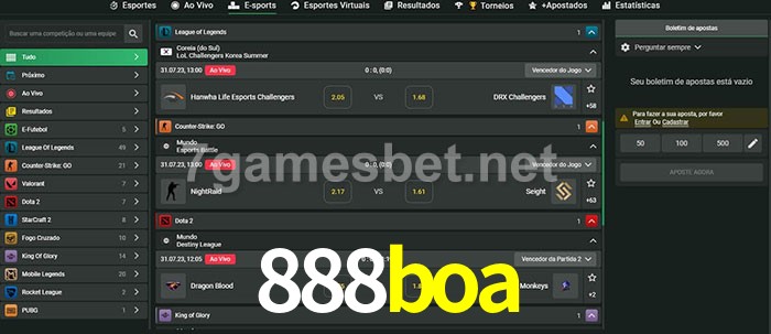 O 888boa oferece uma grande seleção de opções de apostas em e-sports com probabilidades competitivas